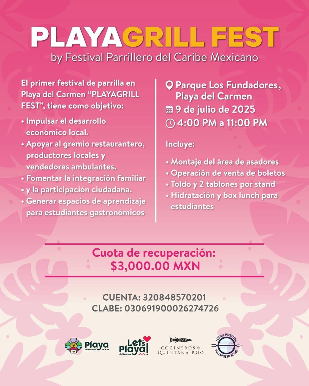 Prepárate para vivir una experiencia única llena de sabor, cultura y comunidad en el corazón de Playa del Carmen. El PLAYAGRILL FEST, organizado por el Festival Parrillero del Caribe Mexicano, reunirá lo mejor del arte del asado con un enfoque social, turístico y económico para la región.